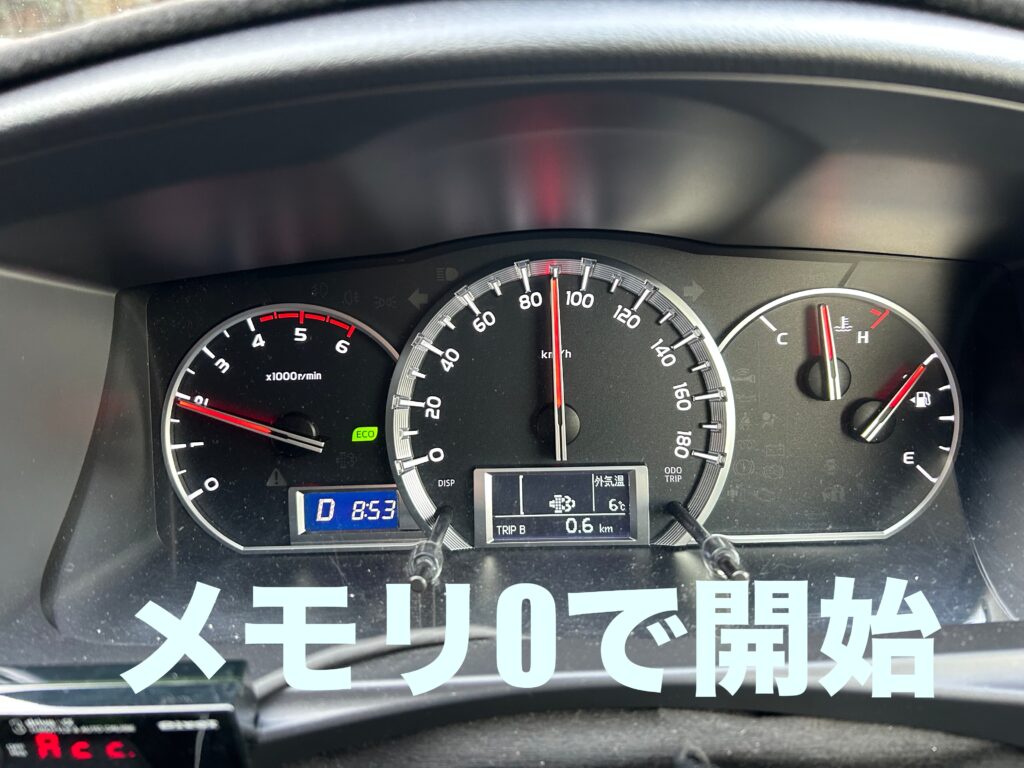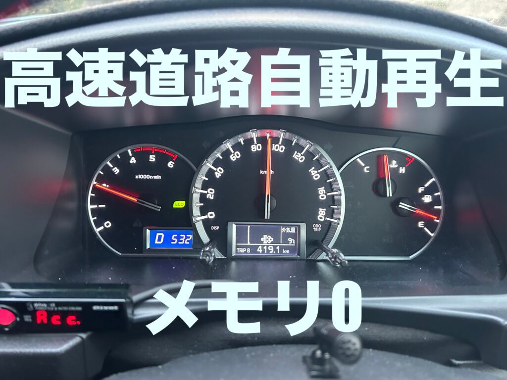 高速道路50キロ走って自動再生が終わりメモリが0になって計測開始。