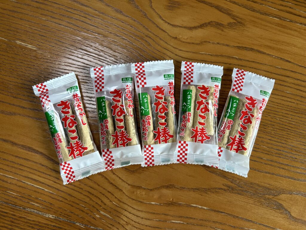 Kinako sticks are traditional snacks made by kneading sugar, starch syrup, and other ingredients into sticks and dusting them with kinako (roasted soybean flour).